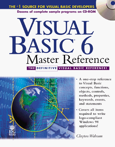 Visual Basic 6 Master Reference includes explanations for over 1000 keywords, statements, functions, concepts, objects, and controls, as well as associated events, methods, and properties - everything you need to create fully logo-compliant Windows 98 applications.Find the information you need in record time! This comprehensive reference is organized alphabetically with cross-references throughout. You can look up topics by:Concept - Look up ActiveX Controls and find out what they are and how to